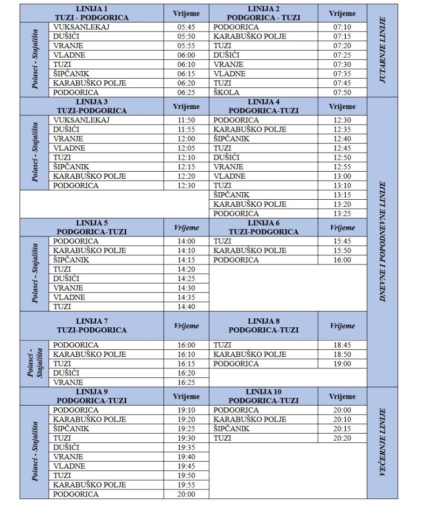 Linije: Tuzi – Podgorica / Podgorica – Tuzi
