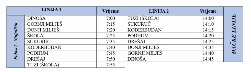 Đačke linije – red vožnje: